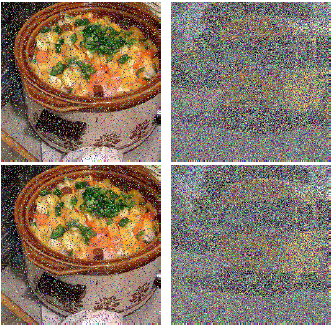 - The system learns by deep learning algorithm to differentiate between the pair of images clear-grainy images and eventually cleaning up and reconstructing the grainy images.